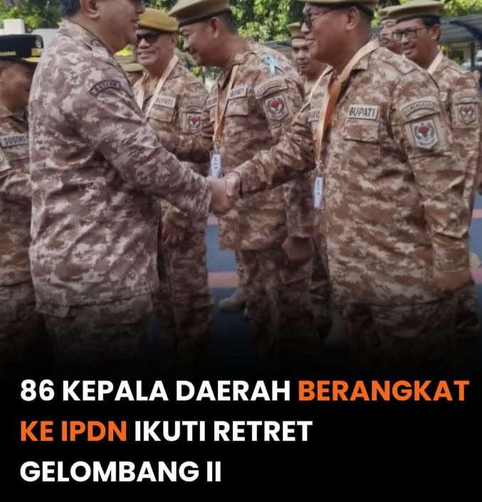 Sebanyak 86 peserta yang terdiri dari kepala daerah dan wakil kepala daerah dari seluruh Indonesia diberangkatkan dari Kantor Kementerian Dalam Negeri (Kemendagri), Jakarta, pada Minggu pagi, 22 Juni 2025, untuk mengikuti kegiatan Retreat Kepala Daerah Gelombang II di Institut Pemerintahan Dalam Negeri (IPDN), Jatinangor, Kabupaten Sumedang, Jawa Barat. Keberangkatan mereka diawali dengan apel pagi yang dipimpin langsung oleh Sekretaris Jenderal Kemendagri, Tomsi Tohir, serta pembekalan singkat yang menekankan pentingnya kedisiplinan dan integritas dalam menjalankan tugas kepemimpinan. Para peserta kemudian melanjutkan perjalanan ke lokasi retret dengan menggunakan kereta cepat Whoosh sebagai simbol efisiensi dan modernisasi dalam sistem pemerintahan. Retret ini merupakan inisiatif Kemendagri untuk membina dan menguatkan karakter kepala daerah, tidak hanya melalui aktivitas fisik tetapi juga melalui pelatihan mental dan etika pemerintahan.
