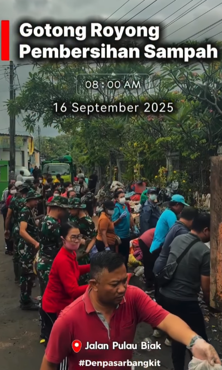 Suasana pagi di Jalan Pulau Biak II, Denpasar, Selasa (16/9/2025), menjadi saksi semangat kebersamaan luar biasa ketika warga, aparat pemerintah, dan personel TNI bahu-membahu membersihkan sisa lumpur, sampah, serta material banjir yang beberapa hari sebelumnya melanda wilayah perkotaan. Dengan peralatan sederhana mulai dari cangkul, sapu, hingga truk pengangkut sampah, mereka bergerak serentak menyingkirkan hambatan yang masih menyisakan aroma lumpur pekat dan menyelimuti jalanan. Wakil Wali Kota Denpasar, I Kadek Agus Arya Wibawa, hadir langsung meninjau lokasi dan tak segan ikut menyapa warga serta menyemangati petugas. Ia menegaskan bahwa gotong royong menjadi kekuatan utama bagi masyarakat Bali dalam menghadapi bencana, karena di balik musibah selalu ada ruang untuk mempererat solidaritas. Bagi warga, banjir bukan hanya ujian fisik melainkan juga mental, namun kehadiran pemerintah bersama TNI memberi dorongan psikologis bahwa mereka tidak sendirian. Deretan relawan muda, kelompok adat, hingga organisasi kemasyarakatan juga tampak bergabung, memperlihatkan wajah Denpasar yang tidak hanya bertahan tetapi juga berusaha bangkit. Sembari membersihkan selokan dan jalan, percakapan ringan antara warga dan aparat menggambarkan optimisme bahwa kota ini akan segera pulih, terlebih dukungan logistik serta peralatan tambahan dari Pemkot Denpasar terus disalurkan agar proses pembersihan berjalan cepat dan merata.