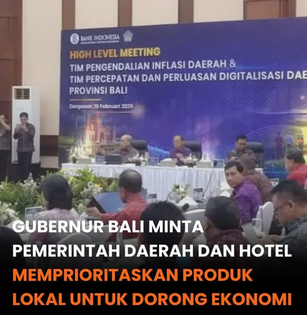 Gubernur Bali, Wayan Koster, meminta pemerintah daerah, pelaku perhotelan, dan restoran di Bali untuk memprioritaskan penggunaan produk lokal asal Pulau Dewata. Langkah tersebut dinilai strategis untuk menggerakkan perekonomian daerah sekaligus menekan potensi inflasi. Pernyataan itu disampaikan Koster di sela-sela memimpin rapat koordinasi Tim Pengendalian Inflasi Daerah (TPID) dan Tim Percepatan dan Perluasan Digitalisasi Daerah (TP2DD) Bali di Denpasar, Selasa (10/2).