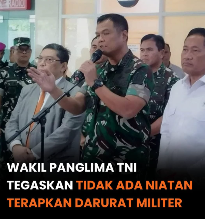 Wakil Panglima TNI, Jenderal TNI Tandyo Budi Revita, menegaskan bahwa tidak ada agenda maupun niat dari aparat keamanan untuk melakukan pembiaran terhadap aksi massa yang berujung anarkis demi membuka peluang penerapan kondisi darurat militer. Pernyataan ini disampaikan Tandyo saat menghadiri rapat di Gedung DPR RI, Jakarta, Senin (1/9), menanggapi isu yang sempat mencuat di ruang publik mengenai keterlibatan TNI dalam skenario tersebut. Menurutnya, spekulasi semacam itu sama sekali tidak benar dan berpotensi menimbulkan kesalahpahaman serta keresahan di tengah masyarakat. Tandyo menekankan bahwa tugas utama TNI tetap berlandaskan pada aturan konstitusi, di mana keterlibatan dalam pengamanan aksi demonstrasi hanyalah bersifat membantu kepolisian untuk menjaga ketertiban umum, bukan mengambil alih kewenangan. Ia juga menegaskan bahwa TNI tidak memiliki motif politik dalam penanganan aksi massa, melainkan fokus pada tugas menjaga stabilitas dan mencegah terjadinya eskalasi kekerasan. Dengan demikian, tuduhan adanya pembiaran atau upaya menciptakan kondisi darurat militer tidak memiliki dasar dan justru merugikan citra institusi pertahanan.